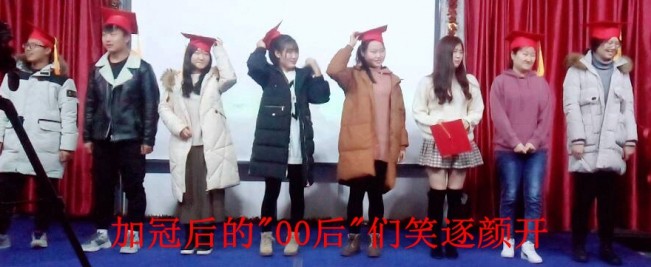 展示专业风采的视频拉开了活动的序幕,视频记录了同学们以及本专业一年来的成长与变化。视频播放结束后“00后”的同学被邀请上台,袁老师亲手为每名同学戴上成人帽,行加冠礼并致辞祝贺,祝贺9名同学从此开启了新的人生和新的征程,为他们送上了美好的祝福与最殷切的期盼,祝福他们成长快乐,一生平安,祝愿他们在未来身心健康,学业有成。