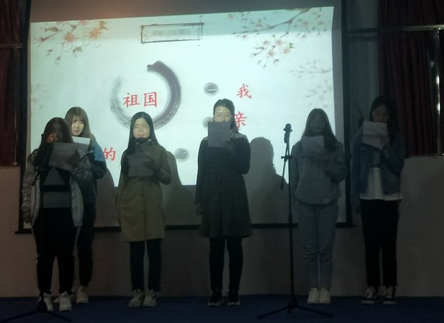 活动开始,全体学生共同观看了爱国教育宣传片,见证了中国科技新发展,中国军队现代化建设。随后,王锦旺老师寄望学生,第一要树立爱国信仰,明确人生目标,立德树人,将自身梦想与中国梦相结合,担负起新时代的使命,为社会主义建设贡献力量。第二要拓展自身综合能力,积极参加社会实践活动,增强实践动手、判断分析等综合能力;第三要努力学习专业知识,夯实专业基础,提升自身专业技能和服务水平。节目表演环节,学生们用歌曲、诗朗诵、舞蹈、相声、小品等生动的表演形式激发了爱国热情,进一步增强了同学们的自信心和自豪感,将活动氛围推向了高潮。活动过程中,学生间通过充分的游戏互动,培养学生间的默契度,增强班级凝聚力。